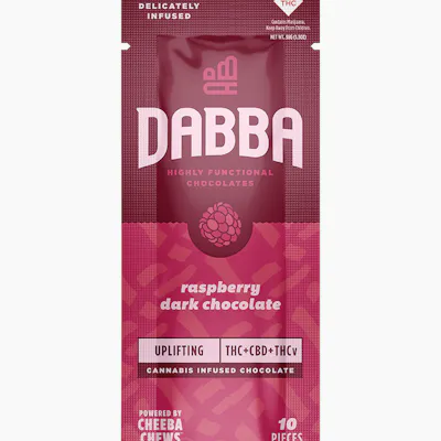 Dabba Premium Raspberry Dark Chocolate – A Flavorful Journey with Every Bite Treat yourself to the perfect combination of rich, velvety dark chocolate and the vibrant sweetness of fresh raspberries with Dabba Premium Raspberry Dark Chocolate Bars. Each bar is crafted with the finest ingredients and infused with one of three powerful cannabinoid formulas designed to elevate your mood, unwind your body, or restore balance. Raspberry Dark Chocolate: A harmonious blend of smooth dark chocolate with a burst of tangy raspberry, creating a sophisticated, bold flavor that’s both sweet and tart. Choose Your Vibe: Uplift: 100mg THC, 50mg THCv, 50mg CBD – A burst of energy and focus to lift your spirits. Unwind: 100mg THC, 100mg CBN, 100mg CBD – Relax and de-stress with a calming formula that’s perfect for winding down. Balance: 100mg THC, 100mg CBG, 100mg CBD – Find your center with a balanced mix of cannabinoids that promote well-being.