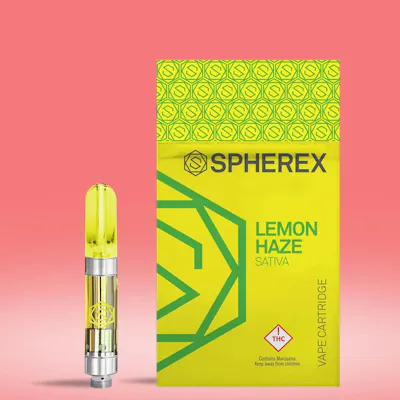 1g of Spherex Signature Distillate with Terpenes (kc). Using the finest hardware to match the finest oil, Spherex's award-winning CO2 distillate 1,000mg All In Ones pack a potent punch, with an average potency of 90%+ THC. Lemon Haze is a bright strain that can enliven any conversation, spark creativity, or enhance physical activity. Balanced with a light citrus and lemon flavor, this Sativa dominant strain has a typical haze profile related to the terpene "Terpinolene". Dominant Terpenes: Limonene, Caryophyllene, and Beta Ocimene. Effects: Promotes energy & liveliness, motivates physical activity, enlivens conversations. (kw)
