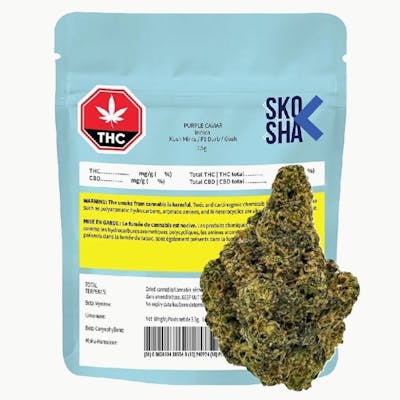 Purple Caviar is another delicacy release from SKOSHA. This indica is a sweet, sour and gassy phenotype. The cross of (Kush Mints X F1 Durb X Gusherz) has resulted in a beautifully coloured flower that will leave you with a pleasant aroma and taste in the aftermath.