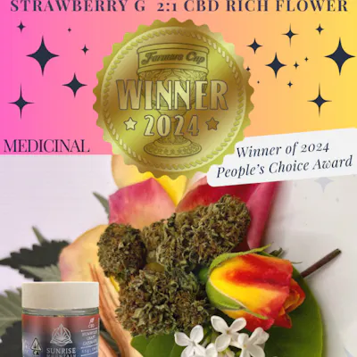 Premium whole cannabis flowers of our triple awarded "Strawberry G" flower. This 2:1 CBD cultivar is a great way to experience the relaxing relief of CBD flower, with just a touch of THC. Popular among low THC consumers, the apparent restorative effects and low psychoactive potential makes Strawberry G a great strain for “any-and-all-time-use”. Customers have reported relief relating to anxiety, depression, insomnia, autoimmune, digestive discomfort, convulsions, nervous system imbalances, chronic and acute pain. Supports a pleasant and balanced state of being.