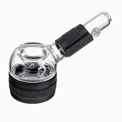 The Softglass Core Hand Pipe is constructed from thick borosilicate glass with integrated silicone accents that provide improved ergonomics and shock protection for added durability. A silicone foot enhances stability and features a bowl cap for extinguishing embers or masking odors. It also comes with a stowable metal tool, perfect for clearing spent material.