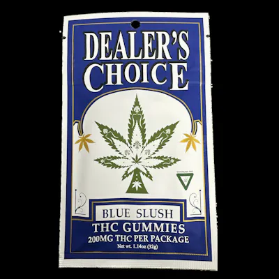200mg Blue Slush Flavored Gummies By Dealers Choice 50mg Pieces 4 Pieces per package