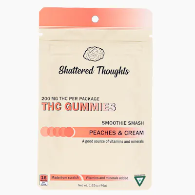 200mg Peaches & Cream Flavored Gummies By Shattered Thoughts 20mg Pieces 10 Pieces per package