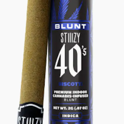 STIIIZY 40's blunts are rolled with 100% tobacco free, kief dusted hemp wraps, secured tightly around a glass tip -2g of total flower -Live Resin infused -Kief coated -Terp Enhanced Elevate your pre-roll game. STIIIZY 40's pre-rolls are setting the standard with high potency, cannabis infused joints coated evenly with kief. Using our proprietary live resin infusion methods, we’ve designed every pre-roll to offer 40% cannabinoids (THC) potency with a unique flavor profile. With a smooth inhale and tasteful exhale, each and every STIIIZY 40's is packed with indoor grown flower, specifically made to ensure a potent and long-lasting high. Spark up the 40's.