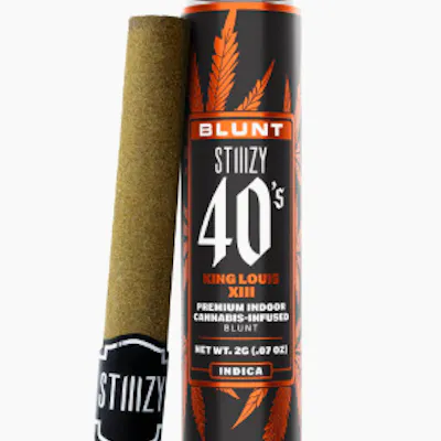 STIIIZY 40's blunts are rolled with 100% tobacco free, kief dusted hemp wraps, secured tightly around a glass tip