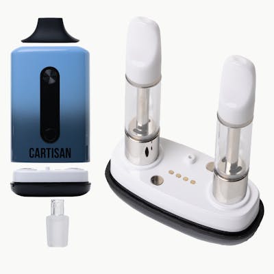 The Cartisan Veil Bar Duo is a sleek, innovative 510 vaporizer that offers the flexibility to enjoy two cartridges simultaneously or effortlessly switch between them with the simple click of a button. Designed for discretion and convenience, it delivers a seamless and versatile vaping experience. The Veil Bar Duo also includes an optional water pipe adapter so you can enjoy it with your favorite glass piece! Power Output Options: 1.8V / 2.4V / 2.8V / 3.4V / 3.8V Battery: 650mAh Capacity: 2 Cartridges up to 2g Size: 3.77" x 2" x 1" (96mm x 51mm x 24.5mm) Packaging Size: 126mm x 71mm x 49mm Charging: USB-C Pre-Heat Function: Yes, 2 Button Click Thread: 510 Display: LCD Voltage Level Cartridge Options Battery Indicator Removeable Magnetic Mouthpiece Dual Cartridge Water Pipe Compatible with 14mm Glass Adapter (Included) Ability to switch between carts at the push of a button