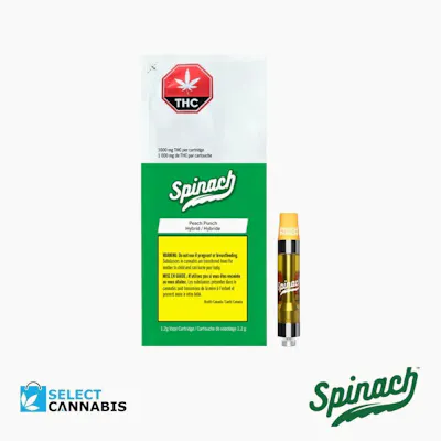 Embrace the sweetness of life with Spinach Peach Punch 1.2g vape in hand. Inspired by the Peaches and Cream phenotype of Skunk No. 1, indulge in the freshest, peachy flavors ripe for the picking. Featuring a highly potent cannabis extract, each cart packs a punch with 1000mg of THC. Our optimized vape technology guarantees bigger hits and bolder flavors with every puff. Crafted from rich CO2 extract, cold-filtered at sub-zero temperatures and quadruple-distilled for unparalleled consistency and pure quality, time after time.