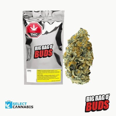 GMO Kush from Big Bag O' Buds offers 28g of flower with 22%+ THC. This strain delivers a pungent, funky profile with earthy kush aromas that make an impression. With bold, robust flavours and a smooth finish, it's the perfect choice for those who enjoy a heavy-hitting, aromatic experience. Packaged in the iconic silver bag, it's all about quality (not to mention quantity!)