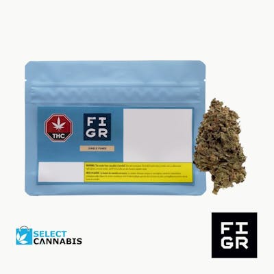 Stop and smell the Jungle Fumes These dense Jungle-coloured buds are packed with diesel and chem flavours! This sativa comes with heavy diesel aromas upfront, chem undertones and notes of tropical fruits, Jungle Fumes will take you on a jungle cruise through your senses! FIGR dried flower products are hand selected to ensure dense, high-quality buds are in every package.