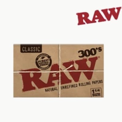 Raw 300's Organic Rolling Papers. 1 1/4 Size, Made from a natural unbleached blend of fibers, this rolling paper has a unique naturally brown hue and is almost transparent thanks to the thinness of the paper. Features: - CrissCross Watermark - All Natural - Additive-free, 100% Vegan - Unbleached and processed in an eco-friendly manner - Truly Taste the natural Flavors of your smoke - Smooth Burn
