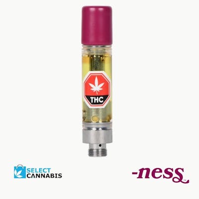 Produced in BC with local whole flower, Ninja Fruit is ready to unmask its high THC and unique and flavourful blend of terpenes caryophyllene, limonene and myrcene. Sweet grape and tropical fruit hit your taste buds swiftly, only to disappear into the night with a smooth, sour berry exhale. -ness distillate is pulled through an advanced ethanol extraction process and does not contain added solvents, pigments, fillers or waxes. The cartridges feature No-Burn Technology for exceptional terpene flavour retention and a proprietary ceramic core that smoothly absorbs oil for consistent vaporization and even heating. Don't let Ninja Fruit sneak past. Explore your -ness. Compatible with 510 thread devices. Device not included.