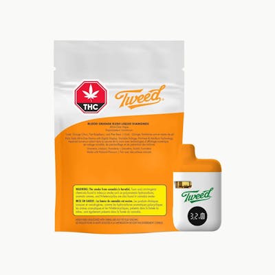 Treat your tastebuds with Tweed Blood Orange Kush Liquid Diamonds Palm Style All-in-One vape! This is not just any vape; each puff delivers the flavours of a classic Kush with a hint of blood orange!