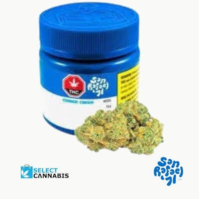 Cosmic Cream by San Rafael '71 is an impressively high-THC indica bred from original, elite genetics developed by our R&D team at Occo - a world-renowned breeding facility nestled in Comox, BC. This top-tier indica takes you on a nostalgic trip with its comforting aroma, reminiscent of sweet cereal milk with subtle hints of fruit and loamy earth. Dank and dense, Cosmic Cream's flowers are compact and acorn-shaped with a glistening sheen of visible trichomes. Cosmic Cream is hang-dried, hand-finished, and carefully hand-bottled with an included humidity pack.