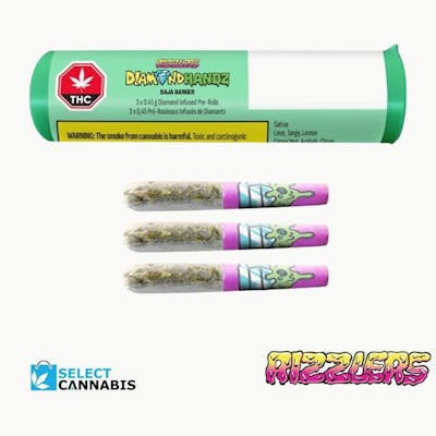 Up your smoke game with the Baja Banger Diamond Handz 0.45 g double-infused pre-rolls. Flexing liquid diamond and distillate infusion for an insane 50% THC without the boujee price tag, soak up the sticky spray of zesty lime and tangy lemon with this certified banger.