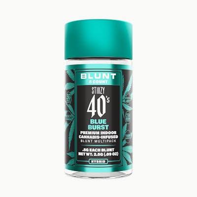 STIIIZY 40’s Mini Blunts Multipack is filled with premium grown STIIIZY cannabis and packed in individual glass vials to maintain freshness and potency. Each 40’s Mini Blunt is rolled with 100% tobacco free, kief dusted hemp wraps which packs a flavorful and potent punch with every exhale, and the tightly secured custom glass tips have been perfected to provide an amazing and consistent burn every time. The STIIIZY 40’s Mini Blunts Multipack is reinventing your high experience by being one of the first to introduce 40% THC and total cannabinoids potency with special live resin infusion. BLUE BURST TASTE: Blue Raspberry, Citrus, Mixed Fruits FEELING: Relaxed, Uplifting, Creative DESCRIPTION: Named for its delicious and powerful flavor, our Blue Burst 40’s are known for its blue raspberry flavor with hints of citrus on every exhale. Blue Burst 40’s will have you taking flight on a balanced and pleasant cerebral high.