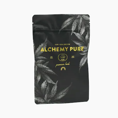Alchemy Pure 1 Ounce Preground Bag (28g) By popular demand, we take a blend of full flower, and painstakingly de stem by hand, so you are left with a mixture of Indica and Sativa ground flower that is ready to roll. Moisture levels maintain quality with humidity and temperature controls from production to packaging to point of sale.