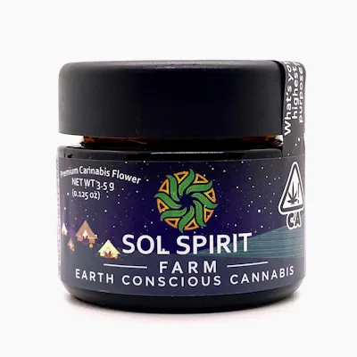 Description: Donny Burger, is a cross between Han Solo Burger and GMO that is sometimes labeled as “GMO BX.” Not for the faint of heart, this heavy and potent, Indica leaning strain has been known to produce THC levels up into the thirties, averaging around 28%. Users have noted an instant euphoric rush that they say starts with a happy and hazy state. They describe this hazy state as being followed by a blissful body stone, that many shared left them stuck on the couch. The terpene, Beta Caryophyllene, is most dominant in this strain, which some reviewers said, combined with Donny Burgers' high THC levels, may explain some of the reduced symptoms of inflammation, chronic pain, and insomnia they noted. Reminiscent of its parents in taste and aroma, breaking apart the buds of Donny Burger will release a pungent and spicy scent, that is laced with lemons and fuel. When combusted, its flavor is musky and smooth, with an undertone of sweet cheese and lemon pepper. When cultivated properly, Donny Burgers buds are airy and saturated, with clumps of golden trichomes. Long, amber pistils peak through the fern green leaves, adding brightness to the crystallized buds. Overall, Donny Burger was revered by reviewers as the perfect accompaniment at the end of their day, with many sharing they've used this strain in the evening, or before bed, to relax after a stressful day or a hard workout. Sol Spirit : Sol Spirit Farm is a small family owned and operated farm in Trinity County, CA, founded by Walter Wood and Judi Nelson. They are passionate environmentalists and self-sufficiency advocates. They grow their own food and cannabis, and practice permaculture, natural building and community organization. They love the sacred cannabis plant and want to help her spread healing and wisdom throughout the world. Sol Spirit feels very fortunate to be nurturing this special piece of land in the legendary “Emerald Triangle” of California. Their special microclimate allows us to grow outdoors in the full sun, with crystal clear water, and no chance of pesticide drift from neighbors. Very few farmers have this opportunity. This inspires us to take special care of our place, to ensure it can produce cannabis and other crops for many generations to come. Ther both were first introduced to cannabis during our time on tour with the Grateful Dead and spent many years traveling the US and other countries before settling down here on the Humboldt/ Trinity County line. They dealt with harassment from the authorities many times over the years and are so glad that times are changing and adults in California, and many other states, can grow and consume cannabis without fear of arrest and incarceration. It is a pleasure for them to be able to now welcome guests to their farm and show them all the ways they can all regenerate the land through responsible farming methods, and the choices we make every day.