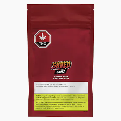 SHRED's Dartz, tube-style pre-rolls crafted with organic hemp paper. Featuring Captain Kush, SHRED's inaugural indica blend.