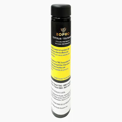 Catch the wave. XoPro’s Citrus Tsunami pre-rolls crash in with a burst of zesty citrus flavour. It's a craft sativa born from Tropicanna Cookies x Orange Zktlz. Expect bold citrus terpenes with smooth and clean burns in every puff. Grown with care, Citrus Tsunami is hang dried, hand trimmed, cured for 14 days and hand packaged to preserve its vibrant aroma and potency.