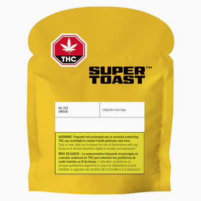 Ride the flavour wave with our Dr. Fizz All-in-One Vape, THC infused with a bold flavour mashup of fizzy cherry spice and vanilla. Super Toast grab n’ go rechargeable vapes are always ready, no battery required. Our custom vape design is the stuff of ergonomic dreams, with the perfect palm-feel and super comfortable mouthpiece for long hauls and big fluffy clouds. Super Toast. Always Ready.