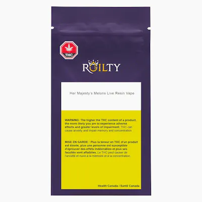 Roilty Her Majesty’s Melons Live Resin Vape (65-80% THC) is 1g of glistening, gold, smooth textured BHO extract. Bountiful and bursting with flavour. This hybrid (Watermelon Zktlz), a cross between Watermelon x Zktlz, has an intricate, fruity flavour profile. Regal and rich in the terpene limonene, the sweet notes of tropical fruits will assure you.