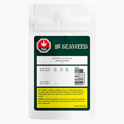 Introducing Seaweed Craft Red Velvet Ice Cream, a unique genetic masterpiece. This strain combines the qualities of its parent strains, Ice Cream Cake and Red Velvet, into a single product. Red Velvet Ice Cream's aroma is a complex blend of sweet, fruity and floral notes, reminiscent of freshly baked red velvet cupcakes topped with creamy vanilla ice cream. This scent makes it a standout in any collection. Visually, Red Velvet Ice Cream features frosty forest green hues accented with deep purple undertones, making each bud a piece of botanical art. Cultivated with care and precision, our Red Velvet Ice Cream is nurtured using sea-derived ingredients such as seaweed and crab flour, ensuring a clean and potent product.