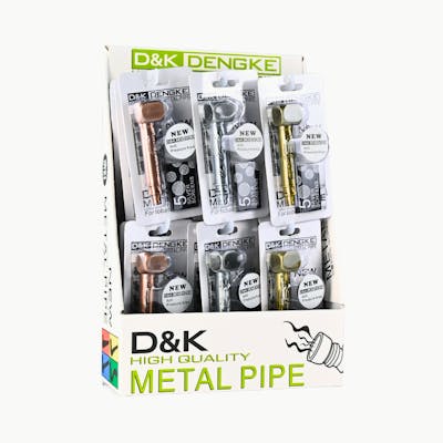 The 3" D&K Square Head Amsterdam Etched Metal Pipe is a stylish and compact smoking accessory designed for both function and aesthetics. Crafted from durable metal, this pipe features an intricate etched design that adds a unique touch to its appearance. The square head design provides a comfortable grip, while the included screens ensure a smooth smoking experience by preventing debris from entering the bowl. Perfect for on-the-go use, this pipe is an ideal choice for smokers who appreciate quality and design.
