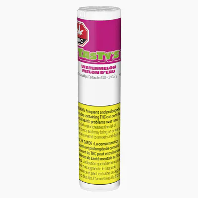 Tasty’s Watermelon 510 Vape offers an unbeatable combination of taste and THC that won’t break the bank. Perfect for a long haul, Watermelon 510 Vape arrives in a giant 1.2 g cartridge, offering ripe and refreshing melon flavours enhanced by botanical terpenes with hints of lime, syrup and sweet mint. Thanks to its super-wide 2 mm aperture, you’ll enjoy taking massive draws and ripping huge clouds. It’s the oversized, underpriced experience your tastebuds have been craving.