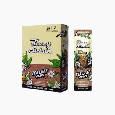 Blazy Susan Tea Leaf Wraps offer a refined, tobacco-free smoking experience with a unique blend of real black tea leaves, chamomile, and cacao for a naturally aromatic, slow-burning session. These vegan wraps are free from nicotine and gum lines, sealing easily with a touch of moisture for a smooth, even burn every time. Designed to highlight the flavor of your herb with subtle floral and earthy notes, they’re perfect for solo relaxation or sharing in a group. Available in 2-wrap single packs or bulk 25-pack boxes, Blazy Susan Tea Leaf Wraps bring elegance, ease, and sensory depth to your rolling ritual.