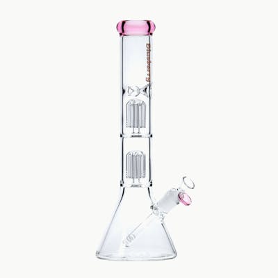 The 15" Blueberry Double Tree Perc Beaker combines striking aesthetics with superior functionality. Crafted from durable borosilicate glass, this bong features double tree percolators designed to provide exceptional filtration for ultra-smooth hits. The beaker-style base ensures stability, making it both practical and visually appealing.