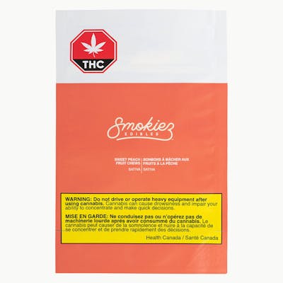 Smokiez Sweet Peach fruit chews are not your average soft chew. They are also made without animal products, gluten or dairy, and contain no high fructose corn syrup. Sweet Peach fruit chews are enhanced with sativa terpenes. Each of our mouth watering fruit chews contains 5 mg of THC and is made with our cannabis distillate for a great taste.