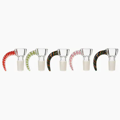 This bowl puts a fun twist on the standard shape with a hooked horn-style handle that makes lifting and clearing simple. Each one features bright, candy-inspired color accents that add personality without changing how it functions. Made from durable glass, it’s built for everyday use and delivers smooth, steady airflow. A 14mm fit makes it compatible with most standard setups, giving you a reliable bowl with extra visual flair.