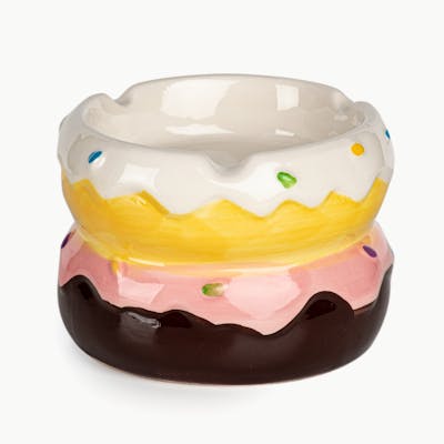 This ashtray of double-stacked donut perfection is made of ceramic and features decorations of icing and sprinkles. Mmm... donuts.