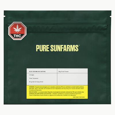 Blue Dream #16 is a hand-picked pheno of Blue Dream selected for its complex fruit aromas, impressive bud structure and elevated potency. Our growers have been nurturing this popular West Coast sativa in our greenhouse for years, always on the hunt for new expressions of the strain — and this pheno delivers. Blue Dream #16 boasts frosty, long-stretching lime green buds and dreamy aromas of citrus, blueberry, spice and cake from dominant terpenes limonene, beta-pinene and ocimene. Pure BC bud, hand-harvested, hang-dried and hand-finished.