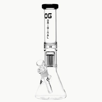 Designed for clean, cool pulls, the 12-inch OG Original Beaker Bong features a precision 8-arm tree percolator that diffuses smoke for maximum filtration. Its sturdy beaker base holds plenty of water for smoother rips, while the built-in ice pinch takes cooling to the next level. Crafted from thick 5mm borosilicate glass and accented with a touch of color, this piece blends style, stability, and performance—perfect for daily use or as a reliable centerpiece in any collection.