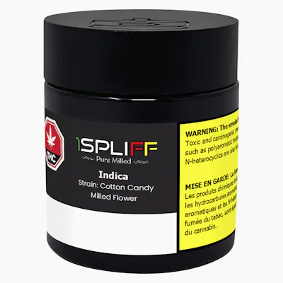 1Spliff Pure Milled is an indica dominant strain crafted from top cola buds, ensuring a potent, flavourful and smooth smoking experience. With a sweet, sugary aroma and notes of berry and vanilla, this strain delivers a rich and velvety smoke. Expertly milled, this flower is precision ground for an ideal consistency. It's fluffy, even and ready to roll, pack or vape. The careful processing preserves the trichomes and terpene profile, ensuring a slow and consistent burn without excess shake or stems.