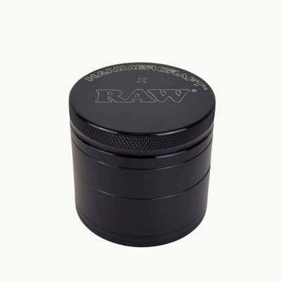 The RAW x Hammercraft 56mm Grinder strikes the perfect balance of portability and capacity. Engineered from aircraft-grade aluminum with a durable anodized finish, this 4-piece design features razor-sharp blades, a stainless steel pollen screen, and strong neodymium magnets for tight closure. The thin poly ring adds a smooth grinding action with minimal resistance, making it ideal for everyday use.
