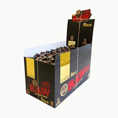 RAW Black King Size Cones are crafted from RAW’s thinnest, slowest-burning natural paper, designed for a smooth, even burn that lets your material’s flavor shine through. Each pack includes 3 pre-rolled king size cones made from unbleached, additive-free paper with a natural gumline and RAW’s signature criss-cross watermark. Ideal for those who want a premium smoking experience with minimal processing.