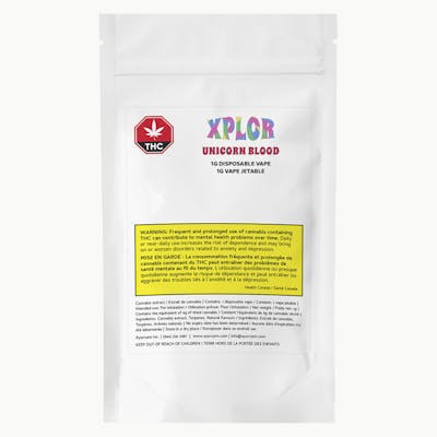 XPLOR's Unicorn Blood vape combines juicy grape and sweet blueberry. It balances bold sweetness and tangy tartness.