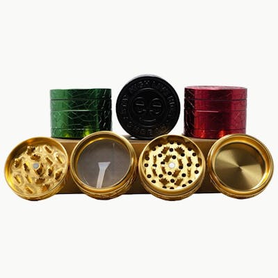 The Cheech 63mm 4-Piece Retro Logo Grinder combines vintage design with modern functionality. Made from high-quality aluminum, this grinder features a 4-piece setup with a pollen catcher and razor-sharp diamond-shaped teeth for a smooth and efficient grind. The retro logo adds a nostalgic touch to the sleek, durable construction, making it a standout piece for any collection. At 63mm, this grinder provides ample space for grinding your herb while remaining compact and portable. The magnetic lid ensures a secure fit, keeping everything contained for easy use on the go. Specifications: Size: 63mm diameter Pieces: 4-piece design with pollen catcher Material: High-quality aluminum construction Design: Retro logo for a vintage touch Teeth: Diamond-shaped teeth for efficient grinding Lid: Magnetic for secure closure Functionality: Smooth and consistent grinding with added pollen collection The Cheech 63mm 4-Piece Retro Logo Grinder is the perfect combination of style and functionality, delivering a smooth grind and a vintage-inspired look.