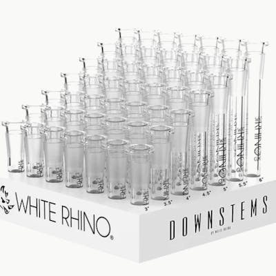 The White Rhino glass downstems 49 count display hold varies sizes of downstems. 3.0" 3.5", 4.0", 4.5", 5.0", 5.5" and 6.0" tall down-stems and seven of each. These glass on glass wholesale downstem are 19/14mm.