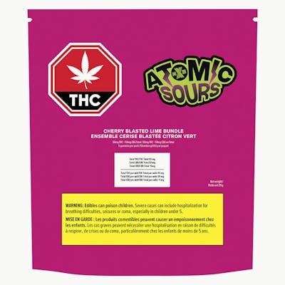 Prepare your tastebuds for the Atomic Sours Cherry Blasted Lime soft chews bundle. This pack delivers some of the sourest key-shaped soft chews you’ll ever put in your mouth. They have the nostalgic and bold flavours of cherry and lime. Each soft chew is infused with 10 mg of THC from liquid THCA diamonds and 10 mg of CBG.
