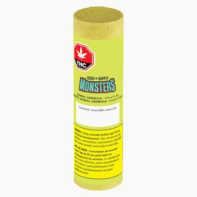Straight out of the lab and into your hands, it’s Animal Amnesia, the latest creation from the Good Supply Monsters line. We spliced the wild intensity of Animal CKS with the genetics of Amnesia OG, then supercharged it with full spectrum resin and a second strain extract for double the entourage effect. This hybrid pre-roll offers high THC. Animal Amnesia explodes with diesel, sweet and skunky notes that lingers long after the smoke clears. Designed for maximum potency, these XL cones use flower, resin and high quality components that burn smooth and even.