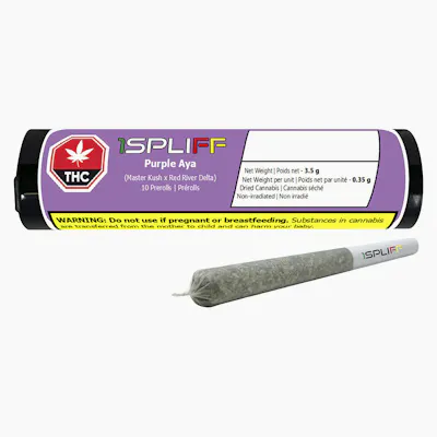 Purple Aya by 1Spliff is the stuff of legends. It's a vibrant eye-catching strain that’s as rare as it is remarkable. This famous purple strain boasts deep, loud purple leaves, shimmering with trichomes and packed into dense, resinous buds. Bred from the elusive Master Kush and the now extinct Red River Delta, Purple Aya is a true gem in the cannabis world, and its stunning appearance is only the beginning. Purple Aya delivers a bold and unforgettable flavour. With each puff, you’re hit with a loud blend of papaya sweetness, sour tang and earthy undertones. Craft-grown indoors under full spectrum lighting, this strain gets the royal treatment. It's hand harvested, hang dried, meticulously hand trimmed and cured for a full 21 days to lock in the quality. If you’re after a strain that’s as consistent in quality as it is in flavour, Purple Aya is your go-to.