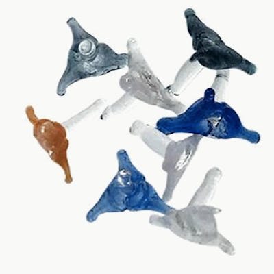 These handy glass screens are designed to sit inside your pipes to prevent the inhalation of ash and other particles while smoking. These little screens do just what you want a screen to do, Heat evenly without a metallic taste and don't contain potentially harmful elements like some metal screens. Each screen is handmade and unique, and the colours may vary from the photos. Choose from two designs, Stars/Daisies or Jacks.