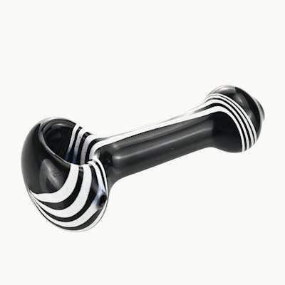This spoon-style pipe pairs a bold black glass body with sharp white stripe detailing for a sleek, modern look that feels premium without being loud. Made from thick durable glass, it sits comfortably in the hand and holds up well to regular use, while the deep bowl and steady airflow keep sessions simple and consistent. Compact enough for travel but solid enough for daily use, it’s an easy go-to piece that looks as good as it smokes.