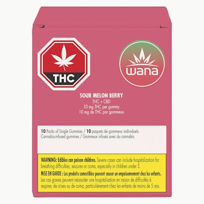 Meet our Sour Melon Berry a 10-pack of individually wrapped gummies. Each gummy contains 10mg THC and 10mg CBD, for a total of 100mg of each per pack. Bursting with juicy watermelon and sweet strawberry, each piece is layered with a mouthwatering sour twist that lingers on the tongue. Perfect for anytime enjoyment, these gummies offer bold flavour, precise dosing, and a delicious experience.