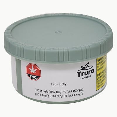 Caps Junky by Truro is a potent legacy hybrid. The cultivar is a collaborative project between two breeders, Capulator and Seed Junky Genetics. This 50/50 balanced strain was created by crossing Kush Mints (Bubba Kush x Animal Mints) x Alien Cookies (Alien OG x Cripple Cake Cookies). Flavour profile is sweet, fruity and minty. Caps Junky buds are a beautiful dark green with orange hairs and frosty crystal trichomes. Caps Junky is proudly grown on the East Coast in Truro, NS in our state-of-the-art small batch production facility, where each bud is carefully cultivated, hang dried, hand trimmed, slow cured (21-28 days), and hand packaged in recyclable aluminum cans that are purged with liquid nitrogen to preserve the dried flower's quality, moisture content and terpene profile.