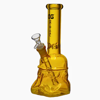 At 10 inches tall and made from solid 5 mm borosilicate glass, this piece feels deliberate, heavy, and steady in the hand, with a sculpted helmet-style base that adds grip without screaming for attention. The straight neck keeps pulls clean and uncomplicated, while the bold OG branding and colour options add just enough personality to keep it from feeling sterile. It’s subtle, tough, and clearly designed for daily use by someone who appreciates a little understated menace in their glass.