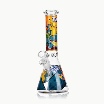 Thick borosilicate glass, a wide beaker base, and colorful Poke-inspired artwork make this bong the perfect mix of nostalgia and power. It’s sturdy, easy to clean, and built to deliver smooth, flavorful pulls every time. Complete with a removable downstem, 14mm bowl, banger, and popper bowl, this piece is ready to battle right out of the box — no flute required.